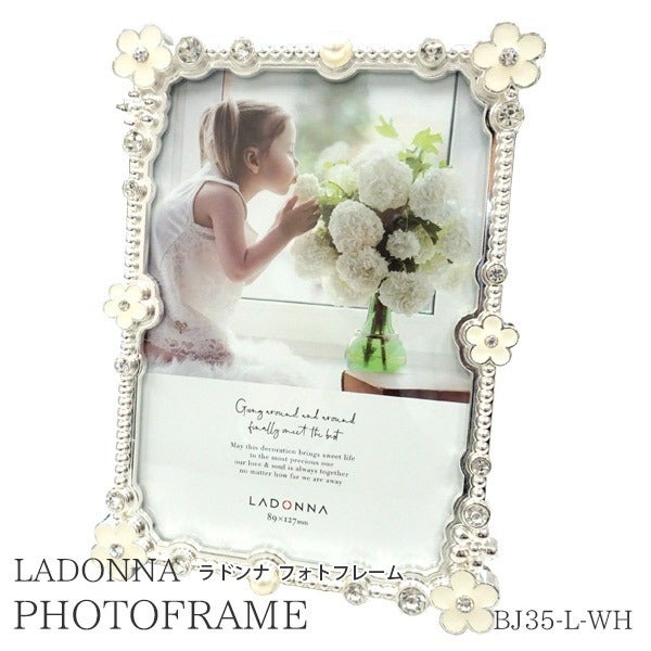 ラドンナ ブライダルフォトフレーム(花とパール)BJ35-L-WH(縦置き・横置き)