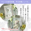 柔らかいパステルカラーとナチュラルな木目調が、ペットの写真を温かみのある優しい雰囲気で包みます。