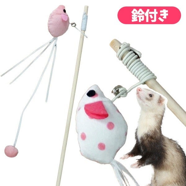 フェレット 玩具 ペット用おもちゃ オモチャ ペットグッズ 猫 猫じゃらし おもちゃ トイ ロング 長め ねずみ 鈴 ゴム ピンク 水玉 ドット かわいい キャットニップ またたび フェレットワールド