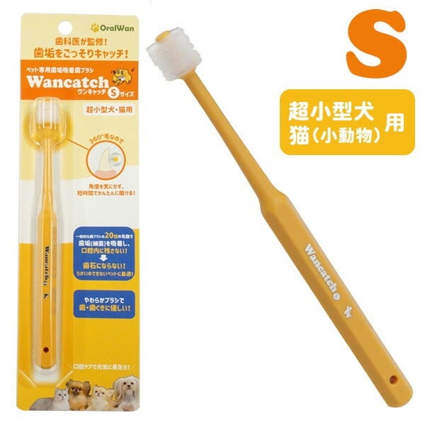 ワンキャッチ(Wancatch)歯ブラシ Sサイズ(超小型犬・猫・小動物)【ペット専用歯垢きゅちゃく歯ブラシ】【歯科医監修】