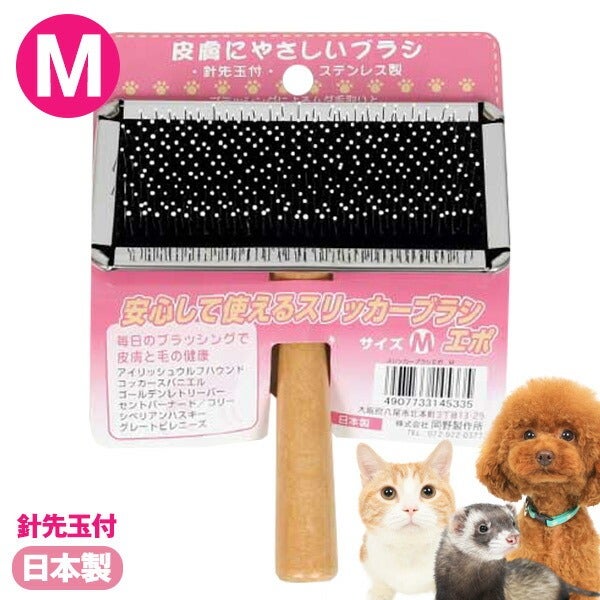 皮膚にやさしい針先玉付きの安心ブラシ。 スリッカーブラシエポ M