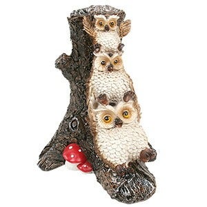 3羽のフクロウが仲良く木を滑り降りている姿が可愛いオブジェ♪