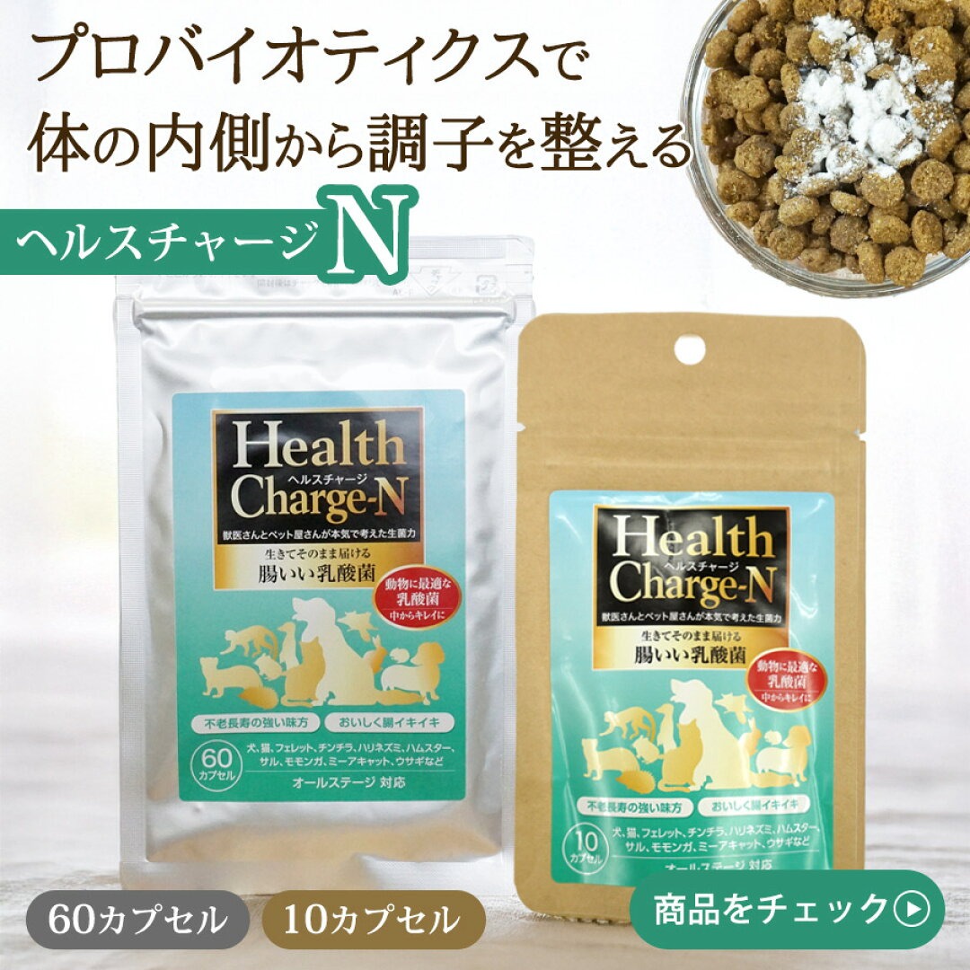 💊「ヘルスチャージ-N」は、ペットの腸内環境を考慮して開発された犬、猫、フェレット・小動物向けの乳酸菌サプリメント。