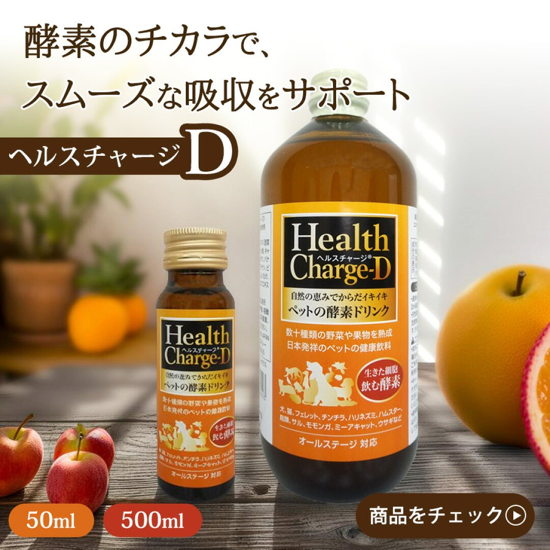 「ヘルスチャージ-D」では、加熱処理された一般的なフードでは摂りにくい“生きた酵素”を手軽に補うことが可能です✨