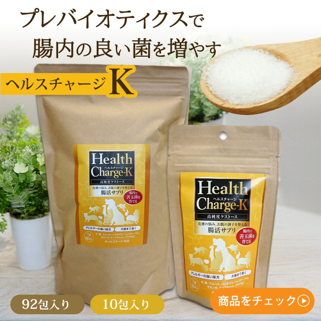 「ヘルスチャージ-K」は、乳酸菌などの善玉菌のエサとなる成分に特化したサプリメント。
