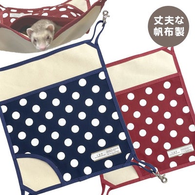 とても丈夫なハンモック。 フェレットがたくさん掘り掘りしているが穴が空いていない。 四隅にしっかりとしたナスカンが付いているが、このナスカンもスムーズに動き、飼い主側も使いやすい。