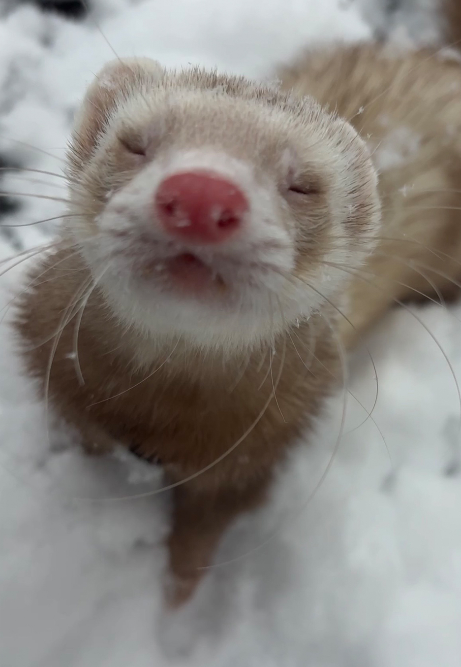 雪冷たくてお鼻真っ赤!
